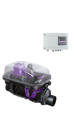 For installation depth (D) from 486 –640 mm. Installation area 750×750 mm with surface water tight cover plate class A 15 made of polymer. Installation kit with choice of cover. Backwater valve according to EN 13564 Type 3 with two open flaps. Plug-and-Play control unit with connection option to building management system and alarm, protection type IP 54, with integrated self diagnosis system SDS, display for operating status and battery back-up, motor is rated protection Type IP 68 (3 m, 24 h). Supply voltage/-frequency: 230 V AC/50 Hz. Power cable length: 5 m (15 m available upon request).